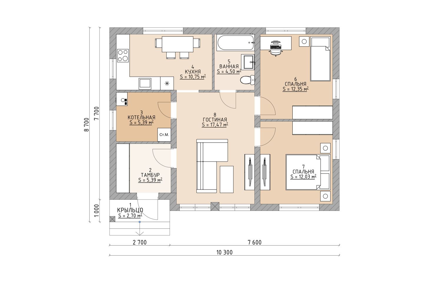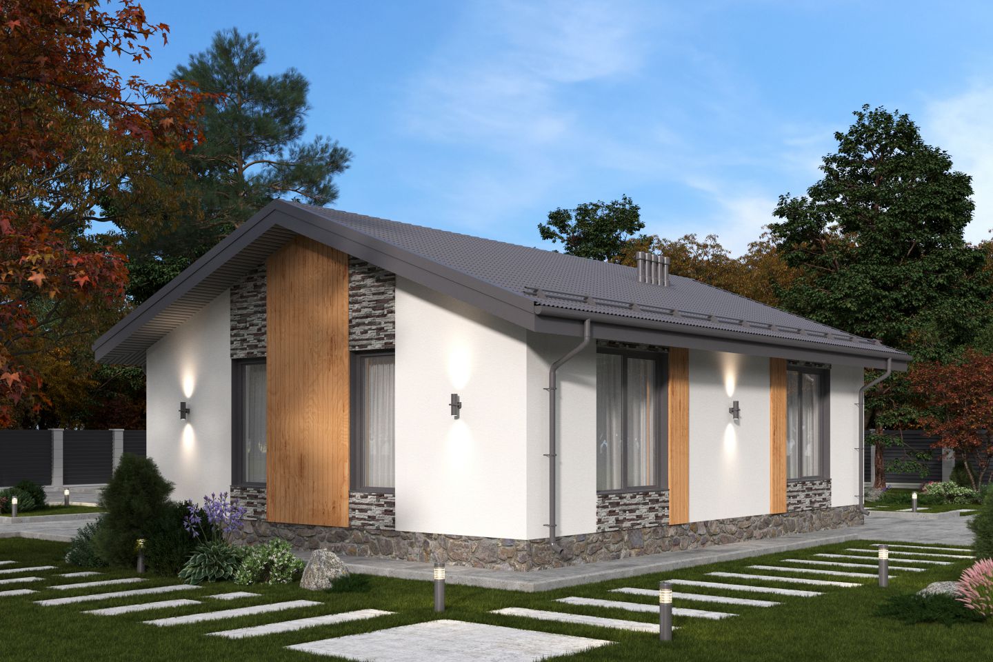 «Берта» - компактный и очень уютный одноэтажный каменный дом площадью 75.1 м² в минималистичном скандинавском стиле.
